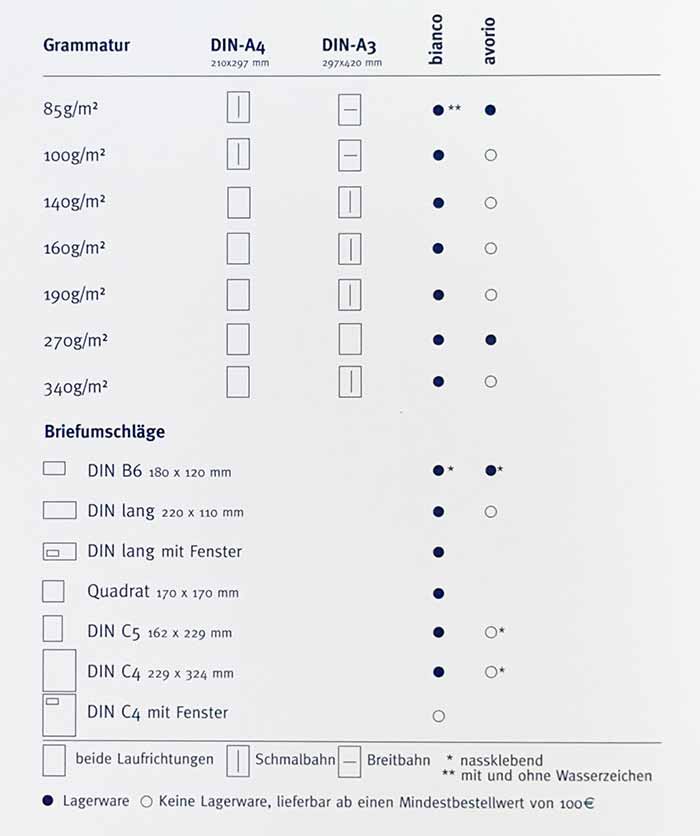 Das Papier erhalten Sie bei uns auch unbedruckt in Ihrem Wunschformat.